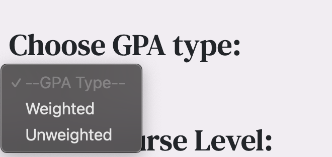 Step 1: Select the type of GPA you wish to calculate